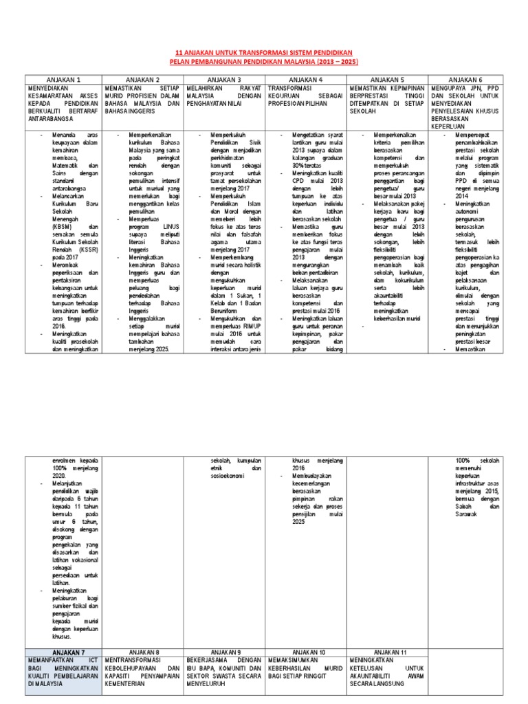 11 anjakan transformasi sistem pendidikan. 11 anjakan untuk transformasi sistem pendidikan pelan pembangunan pendidikan malaysia 2013 2025 anjakan 1 anjakan 2 anjakan 3 anjakan 4 anjakan 5 anjakan 6menyediakan memastikan setiap melahirkan rakyat transformasi memastikan kepimpinan mengupaya jpn ppdkesamarataan akses murid profisien dalam malaysia dengan keguruan sebagai berprestasi tinggi dan sekolah. Transformasi sistem pendidikan pelan pembangunan pendidikan malaysia 2013 2025 11 anjakan dalam transformasi pendidikan dan impak slideshare uses cookies to improve functionality and performance and to provide you with relevant advertising. Bagi melaksanakan transformasi hebat dalam sistem pendidikan. Kita sekarang berada dalam revolusi industri ke 4 4th industrial revolution iaitu suatu penggabungan dunia fizikal digital dan biologikal yang memberi kesan kepada semua disiplin ekonomi dan industri.