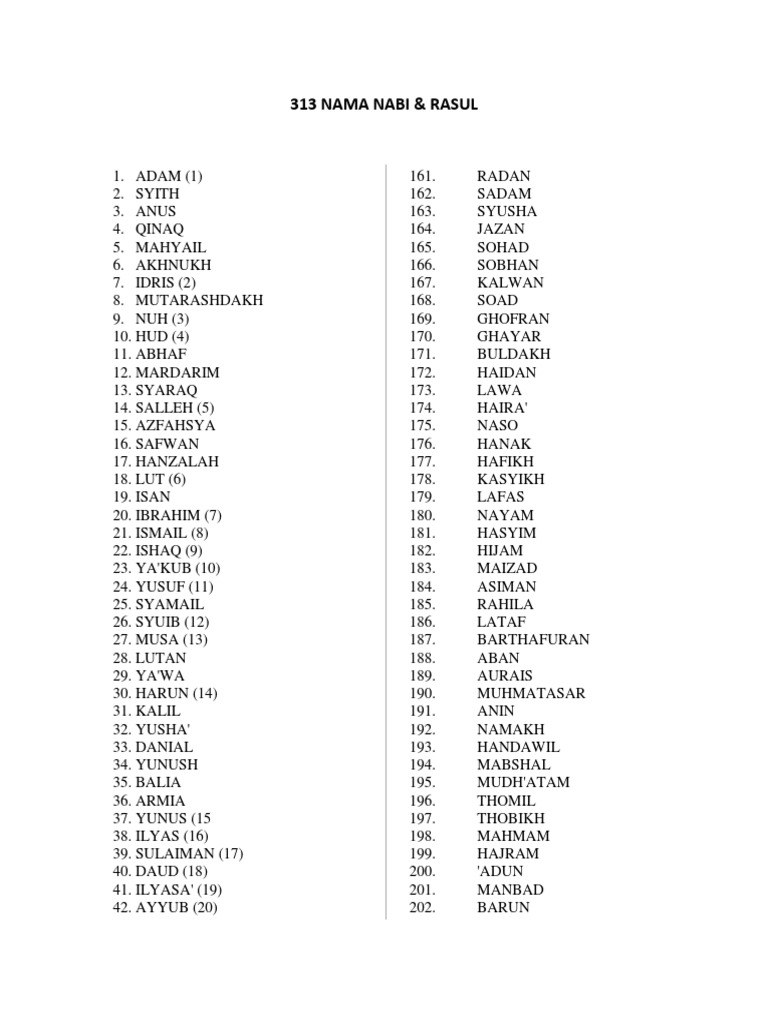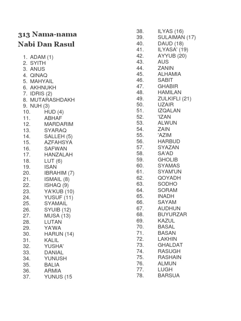 313 Nama Nama Nabi Dan Rasul