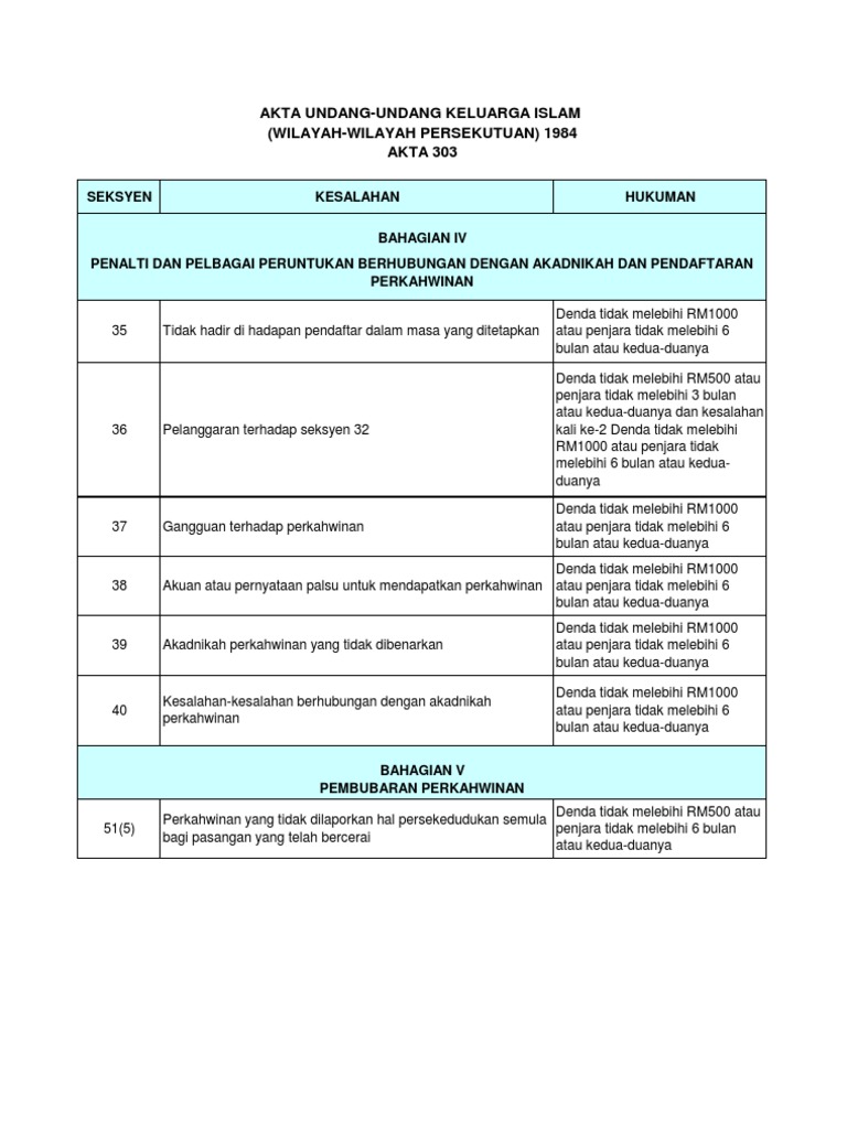 Akta undang undang keluarga islam 303 suatu akta bagi mengkanunkan peruntukan peruntukan tertentu undang undang keluarga islam mengenai perkahwinan perceraian nafkah penjagaan penalti bagi yang melanggar peratuan di dalam akta ini dan lain lain perkara berkaitan dengan kehidupan keluarga. Pengenalan undang undang keluarga islam berpandukan kepada akta undang undang keluarga islam wilayah wilayah persekutuan 1984 1. Perintah darurat undang undang keluarga islam 1999 s 57 pdf author. Akta dan enakmen perkahwinan di bawah umur akta undang undang keluarga islam wilayah wilayah persekutuan 1984 dan enakmen undang undang keluarga islam negeri selangor 2003 menyatakan bahawa umur minimum bagi pasangan yang ingin berkahwin di dalam seksyen 8 adalah seperti di bawah.