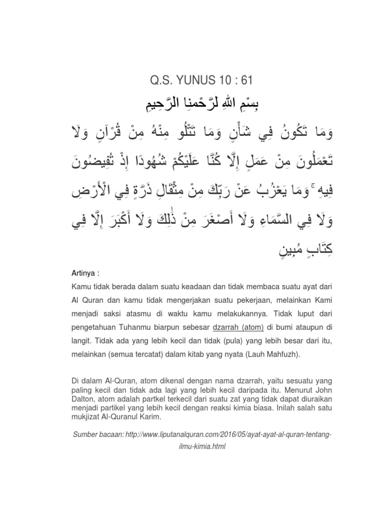 Al qur an diturunkan pada 14 abad yang lalu oleh allah. Alquranpedia org kimia adalah pelajaran yang membahas tentang reaksi reaksi kimia dan pengaplikasiannya. Ayat ayat al quran yang berhubungan dengan ilmu kimia. Untuk itu tidak mengherankan jika para ilmuwan muslim memperoleh inspirasi yang amat besar dari al qur an untuk mengembangkan ilmu ini.
