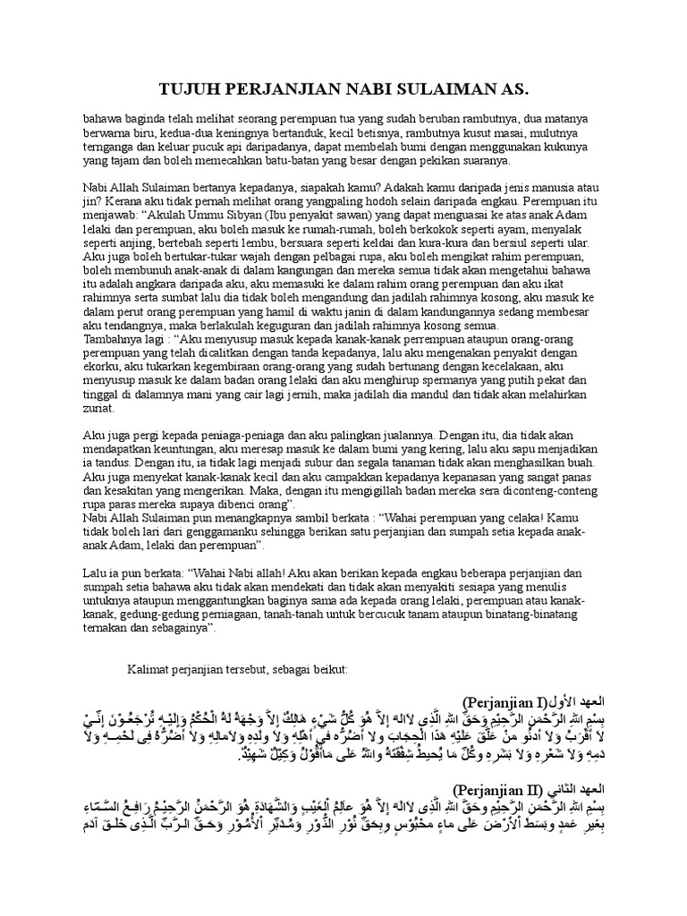 Dan antara lainnya sangat tertarik dengan kisah yang diceritakan oleh ust berkaitan perjanjian nabi sulaiman a s dengan jin ifrit dimana pada ketika itu jin ifrit telah pun berjanji dengan nabi sulaiman a s untuk tidak akan menganggu kaum adam. Pada masa pemerintahan nabi allah sulaiman semua binatang syaitan dan jin adalah dibawah kekuasaan pemerintahan kerajaan nabi sulaiman. Nabi sulaiman a s dan semut. Kisah ini juga disebutkan oleh allah dalam alquran surat an naml ayat 18 19.