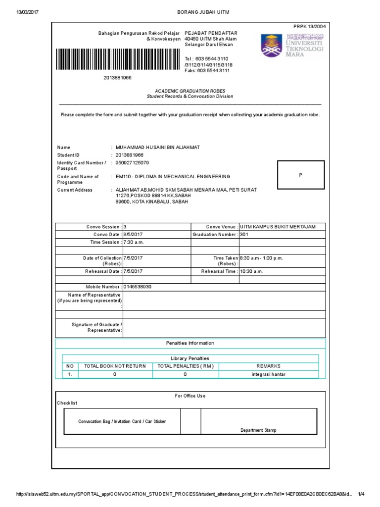 Graduan yang tidak dapat hadir semasa hari pengambilan jubah boleh mewakilkan orang lain dengan mengemukakan dokumen seperti di atas. Sila gunakan no pasport semasa anda di institusi. Lengkapkan borang akuan penyelesaian konvokesyen clearance 2 1. Bahagian pengurusan akademik amd imbala naib c selor akademik antarabangsa no borang.