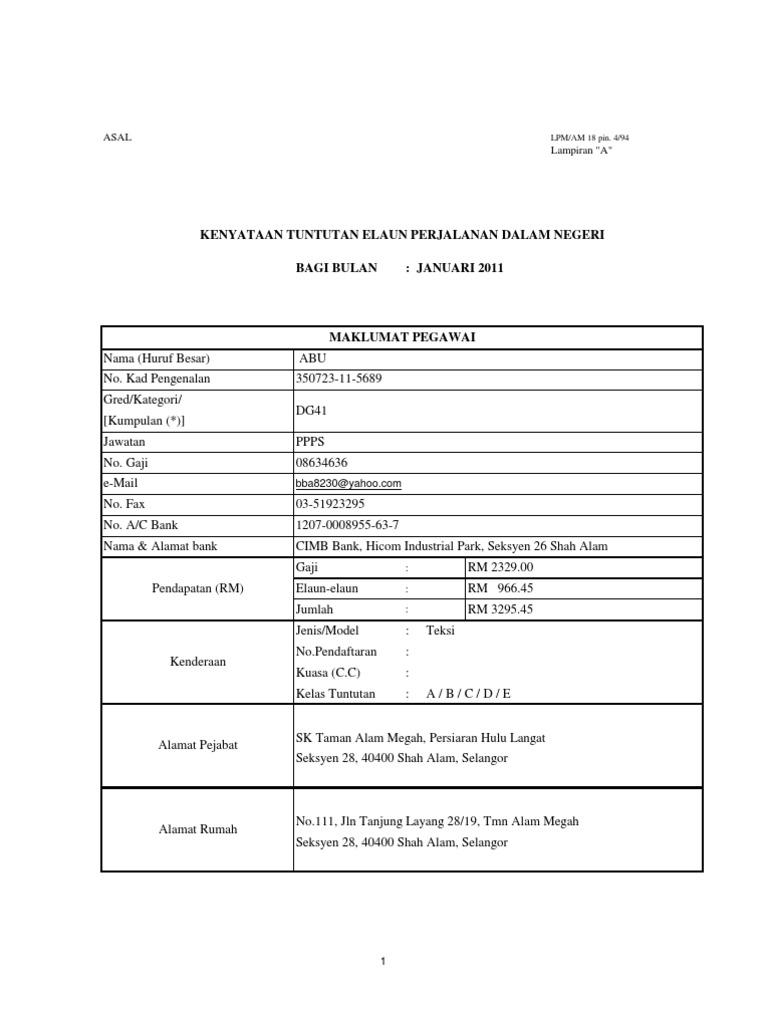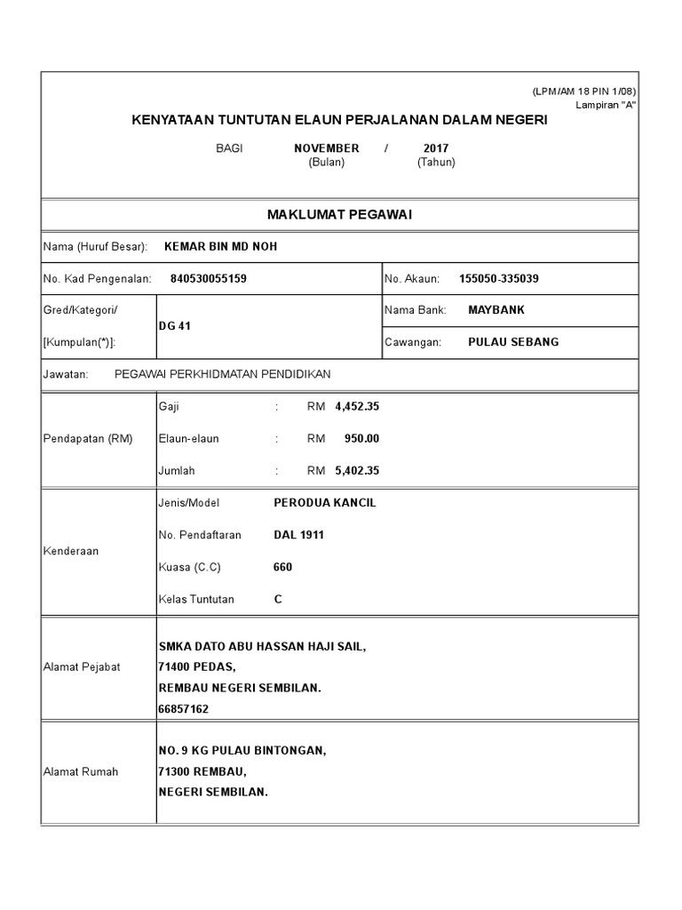Borang tuntutan perjalanan 49 kb. A perjalanan pada tarikh tarikh tersebut adalah benar dan telah dibuat atas urusan rasmi. A rujuk nota penerangan sebelum mengisi borang ini. Tuntutan elaun lebih masa elm tuntutan lain lain.