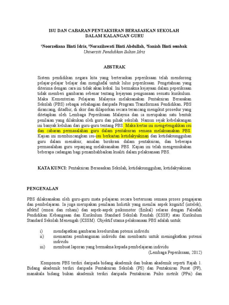 Cabaran yang dihadapi oleh guru dalam melaksanakan pentaksiran sekolah. Pentaksiran sekolah dilaksana dalam bentuk pentaksiran formatif yang dijalankan seiring dengan proses pengajaran dan pembelajaran atau pentaksiran sumatif di akhir unit pembelajaran semester atau tahun. Item yang mempunyai min yang paling tinggi ialah item yang melibatkan guru kurang faham bagaimana melaksanakan pentaksiran pkpim iaitu 3 99. Menunjukkan bahawa aspek masalah yang dihadapi oleh guru semasa melaksanakan pentaksiran berada pada tahap tinggi iaitu 3 89. Lazim yang akan ditanya oleh pengkaji adalah bagi menjawab objektif kajian kedua dan ketiga iaitu mengenal pasti pemahaman guru terhadap pelaksanaan pentaksiran berasaskan sekolah pbs dan mengenal pasti permasalahan yang dihadapi oleh guru sepanjang proses pelaksanaan pentaksiran berasaskan sekolah pbs disekolah.