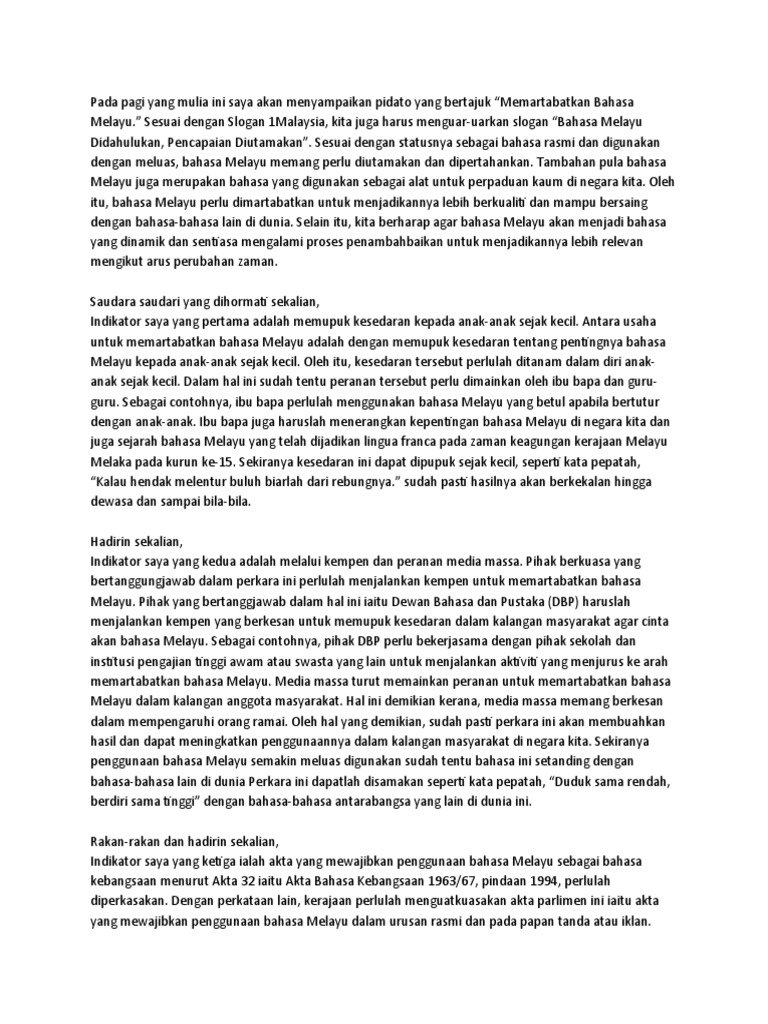 Bahasa malaysia adalah sebuah bentuk standard bahasa melayu yang dipiawaikan mengikut tetapan daripada dewan bahasa dan pustaka sebagai bahasa kebangsaan negara malaysia. Bahasa jiwa bangsa itulah frasa yang paling sesuai untuk melambangkan signifikan sesuatu bahasa kepada bangsa bangsa di malaysia. Abstrak seperti yang termaktub dalam perkara 152 perlembagaan persekutuan bahasa telah dimartabatkan sebagai bahasa kebangsaan dan asas pemb.