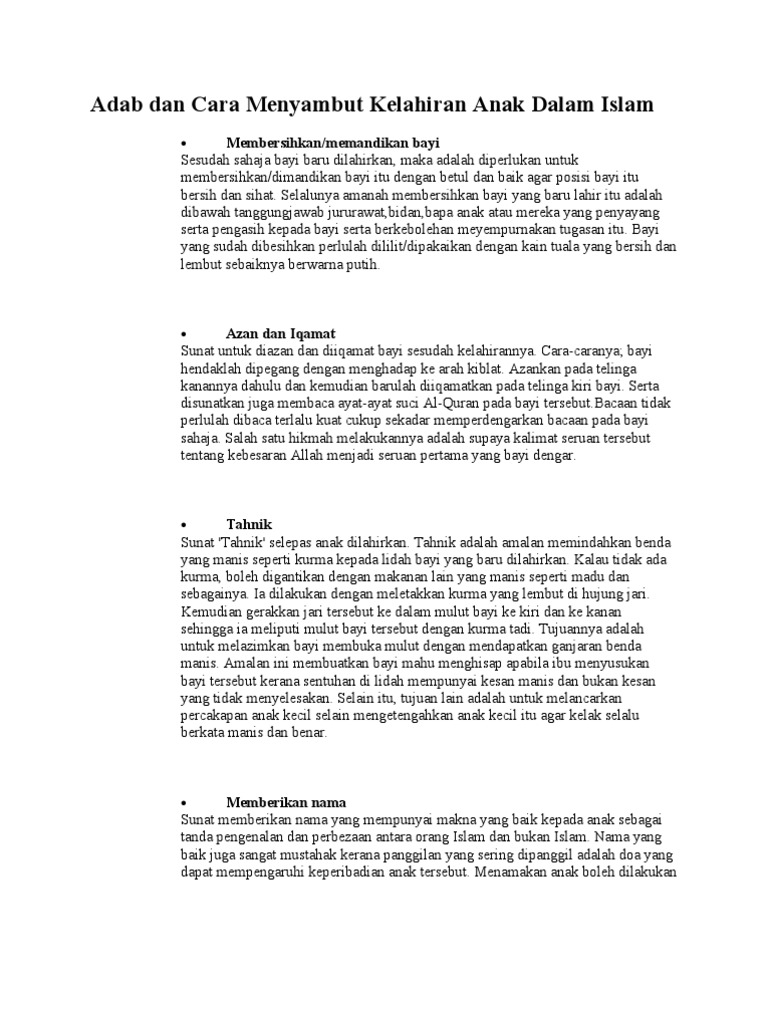 7 sunnah menyambut kelahiran bayi dalam islam 1. Setiap pasangan ibu bapa muslim yang bakal menyambut insan baru dalam rumahtangga menyambut kelahiran dengan laungan azan sederhana bagai melengkapkan proses menyambut kelahiran bayi sama ada bayi yang lahir adalah lelaki atau perempuan. Kadar degupan jantung bayi anda kurang daripada 140 degupan seminit. Tiada yang lebih berharga untuk sesebuah keluarga daripada dikurniakan anak anak yang soleh dan solehah.