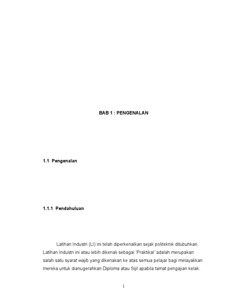 Laporan penuh latihan industri pelajar politeknik perdagangan 1. Hal ini bagi memenuhi keperluan pelajar untuk dianugerah dengan kelayakan diploma dari kemeneterian pendidikan malaysia dan jabatan pengajian politeknik. Bab 1 pengenalan 1 1 pendahuluan latihan industri merupakan sebahagian daripada kursus wajib yang perlu diambil oleh semua pelajar politeknik kementerian pengajian tinggi malaysia kptm setiap pelajar diwajibkan menjalani latihan industri selama. Antara objektif utama laporan latihan industri adalah seperti berikut.