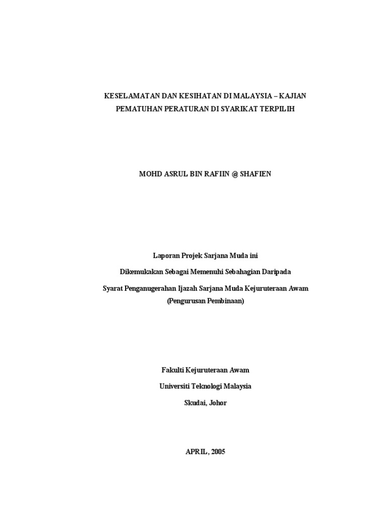 Contoh Laporan Keselamatan Dan Kesihatan Di Tempat Kerja