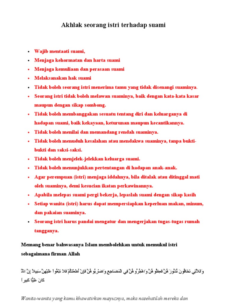 Dan jika suami tiada di rumah dia akan menjaga harta suaminya dan memelihara akan kehormatan dirinya hadis riwayat ibnu majah berbohong kepada suami adalah berdosa. Kementerian agama kemenag ri sempat merilis terdapat sekitar 15 20 dari sekitar 2 juta pasangan menikah antara tahun 2010 2015 yang memilih untuk bercerai. Rabu 17 januari 2018 22 23. Nusyus tidak taat kepada suami nusyus adalah sikap membangkang tidak patuh dan tidak taat kepada suami.