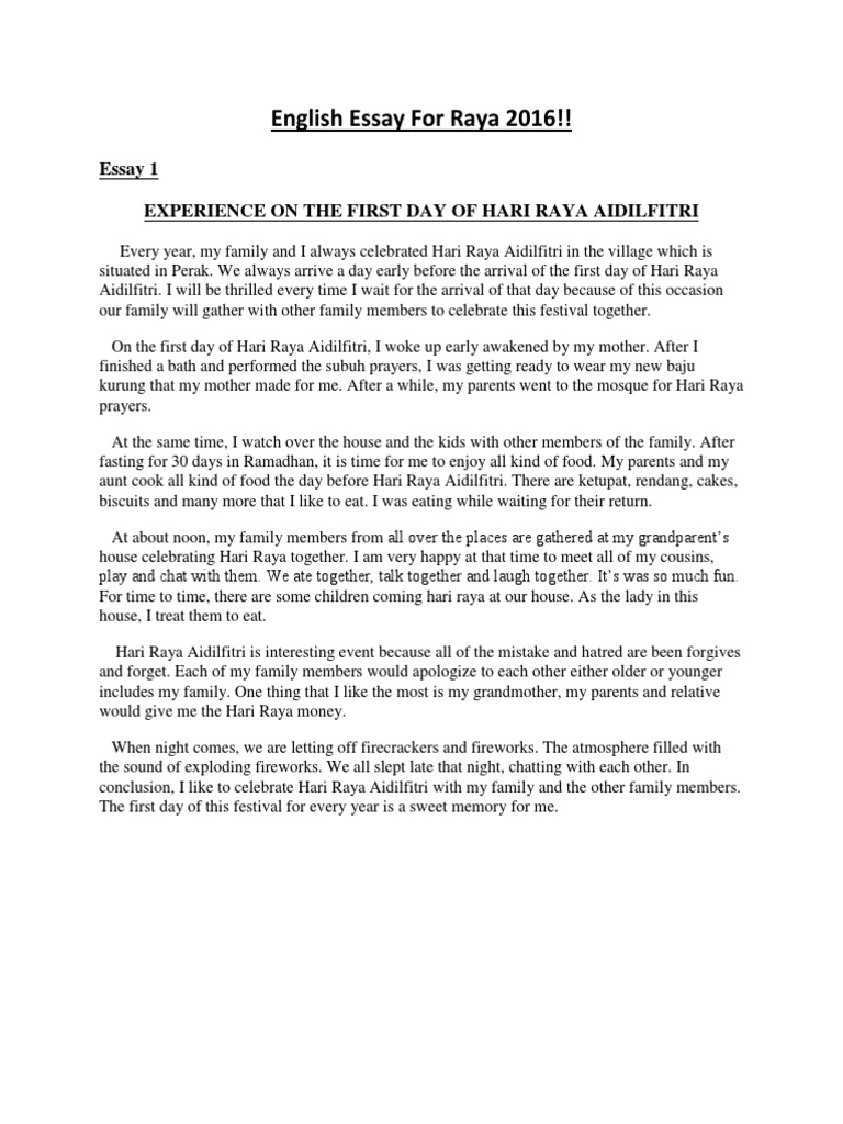 English karangan hari raya aidilfitri. Integrity a way of life essay competition how to write a essay on myself. Hari raya aidil fitri is a day for celebrating the end of the fasting month or ramadhan. This religious eid is the only day in the month of. Hari raya literally means celebration day and hari raya aidilfitri is the day that marks the end oframadan the islamic holy month of dawn to sunset fasting.