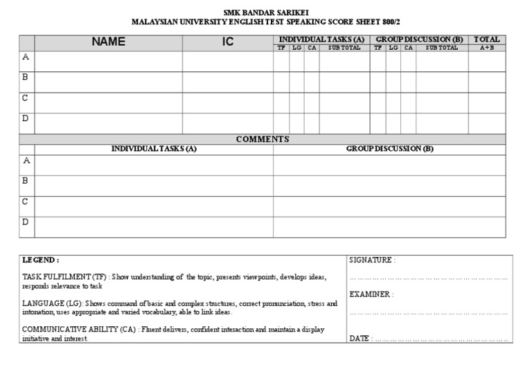 View my reading list. Do not write anything on the question paper. Your average score across the 4 components will decide your muet band from band 1 as the lowest to band 6 as the highest. Muet bands scoring calculations well it seems that this year s speaking exam is around the corner and the muet buzz is in the air again.
