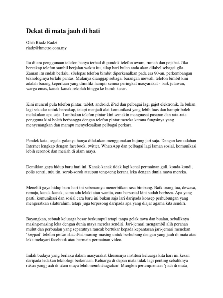 Jauh Di Mata Dekat Di Hati Apakah Itu