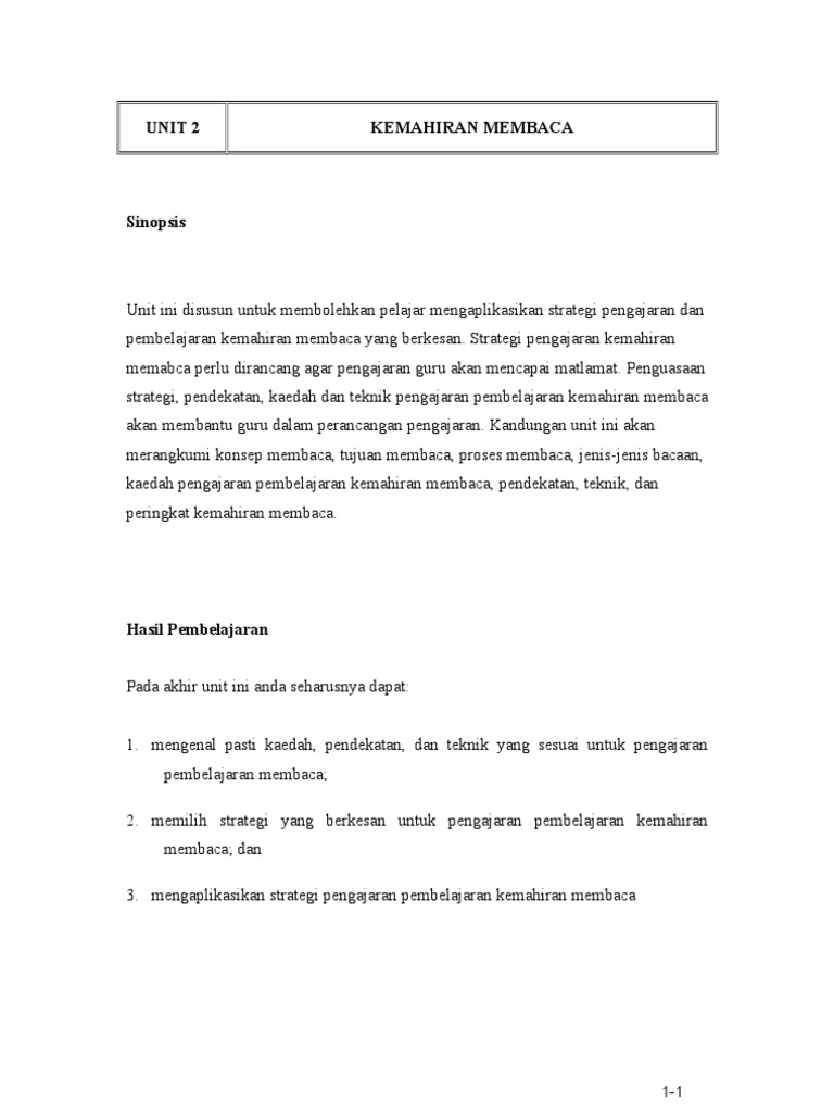 Kemahiran membaca adalah lanjutan daripada kemahiran kemahiran asas seperti mendengar dan bertutur. 3 0 menghuraikan langkah langkah pengajaran kemahiran membaca berdasarkan kaedah dan pendekatan berikut.