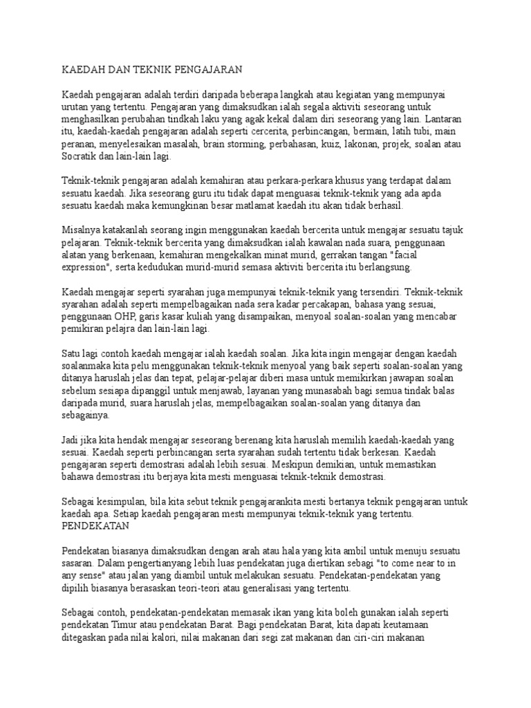 Kaedah dan teknik pengajaran. Pendekatan kaedah dan teknik pembelajaran bagi pelajar bermasalah pendengaran. 2 0 teknik teknik pengajaran dan pembelajaran bahasa melayu menurut kamus dewan edisi keempat teknik adalah kaedah mencipta sesuatu hasil seni seperti muzik karang mengarang dan sebagainya. 5th ed new york. Teknik dicipta dan ditentukan sebelum pelaksanaan pengajaran.