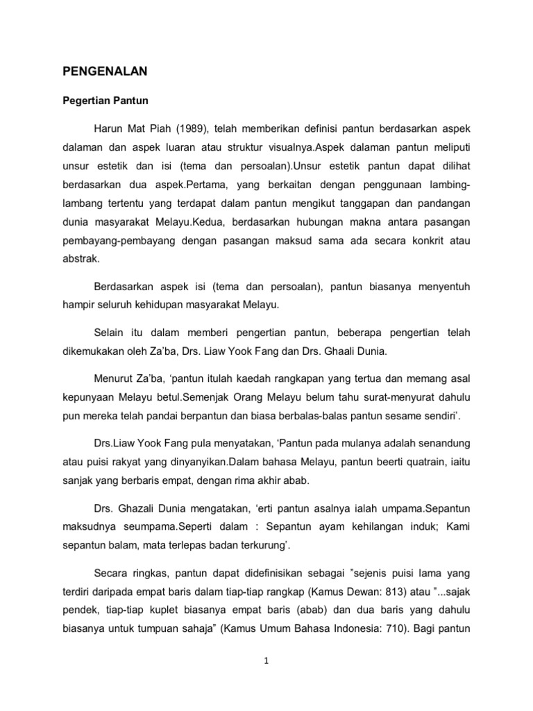 611 pantun yang dibenarkan hanyalah jenis empat kerat iaitu pantun. Terdapat pelbagai jenis pantun iaitu pantun 2 kerat 4 kerat 6 kerat dan pantun 8 kerat. Pantun tanpa mengira dalam bentuk dua enam atau pantun empat kerat merupakan rakaman pengalaman dan pemerhatian orang orang lama dalam kehidupan seharian. Tujuan awal diciptakan pantun adalah untuk memberikan anjuran dan imbauan kepada seseorang ataupun masyarakat.