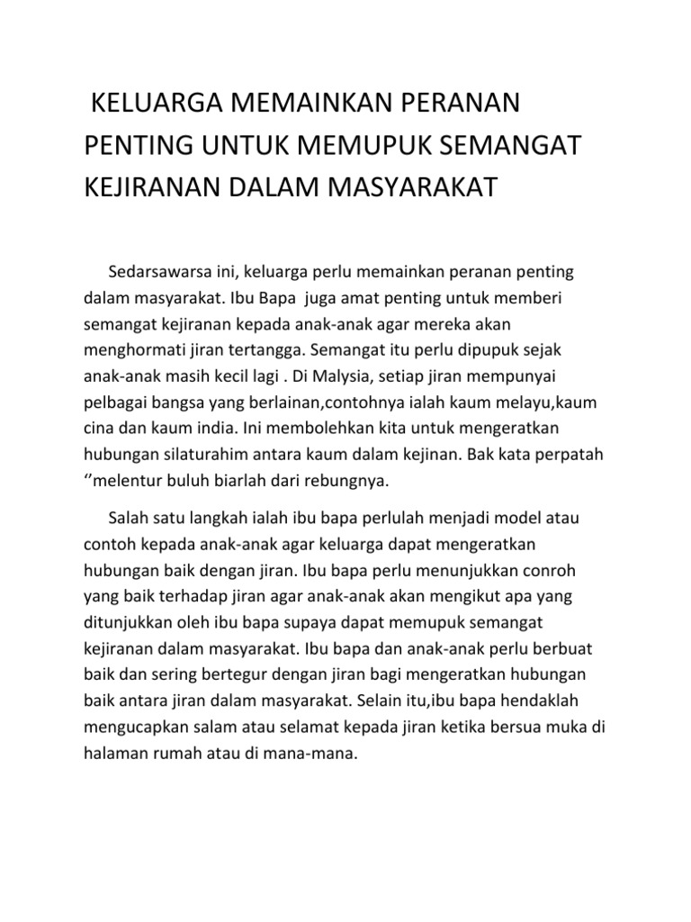 Karangan peranan ibu bapa memupuk semangat kejiranan dalam kalangan anak anak. Nestle crazy mega offer milo maggi nescafe nestum up to 90 discount. Dalam kehidupan sehari hari keluar dari rumah sama ada memandang ke kanan ke kiri atau memandang ke hadapan atau ke belakang rumah yang kita lihat ialah rumah jiran. Dalam hal ini ibu bapa memainkan peranan penting untuk menghidupkan semangat. Semangat kejiranan semakin hari semakin luntur dalam kalangan masyarakat.