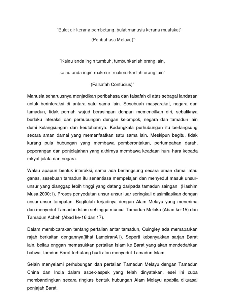 Karangan Peribahasa Bulat Air Kerana Pembetung Bulat Manusia Kerana Muafakat