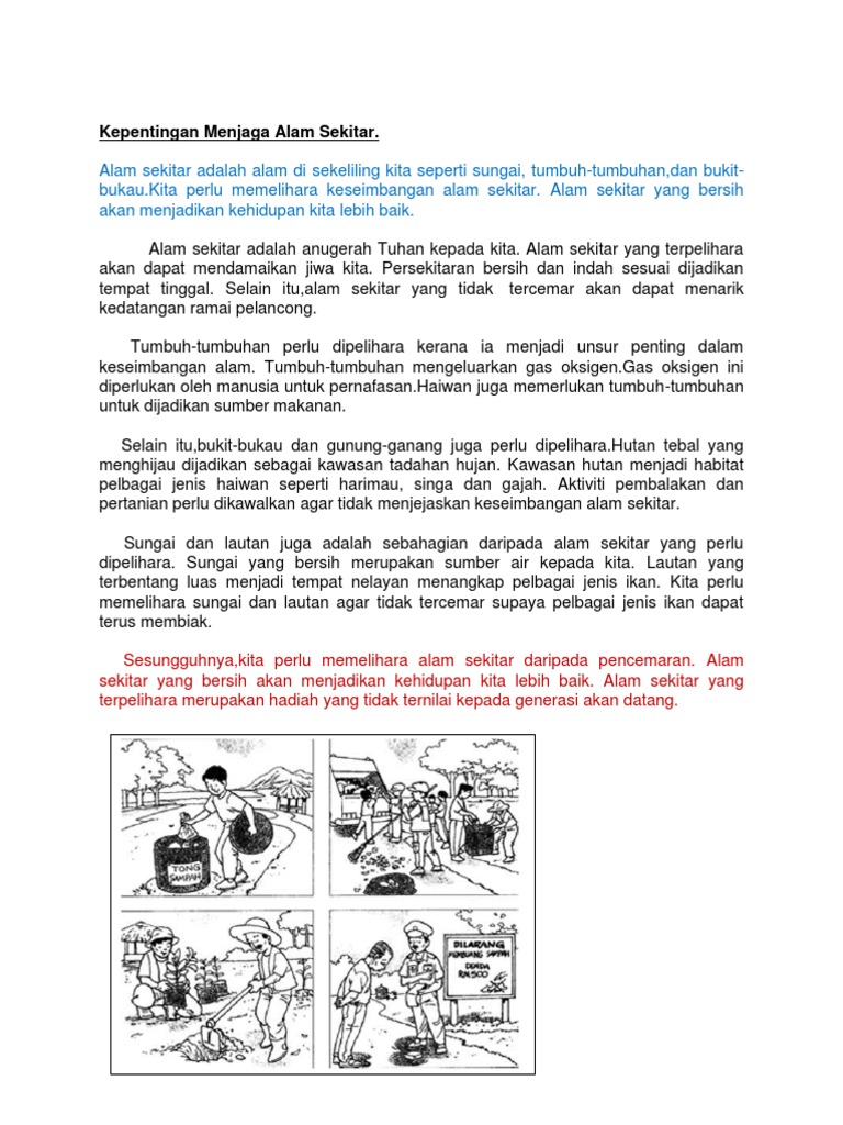 Contoh karangan kepentingan menjaga alam sekitar. Perintah untuk menjaga kestabilan dan. Dan janganlah kamu berbuat kerosakan di muka bumi sesudah allah memperbaikinya surah al a raf 7 56. Alam sekitar yang bersih membolehkan kita menikmati keindahan alam sekitar.