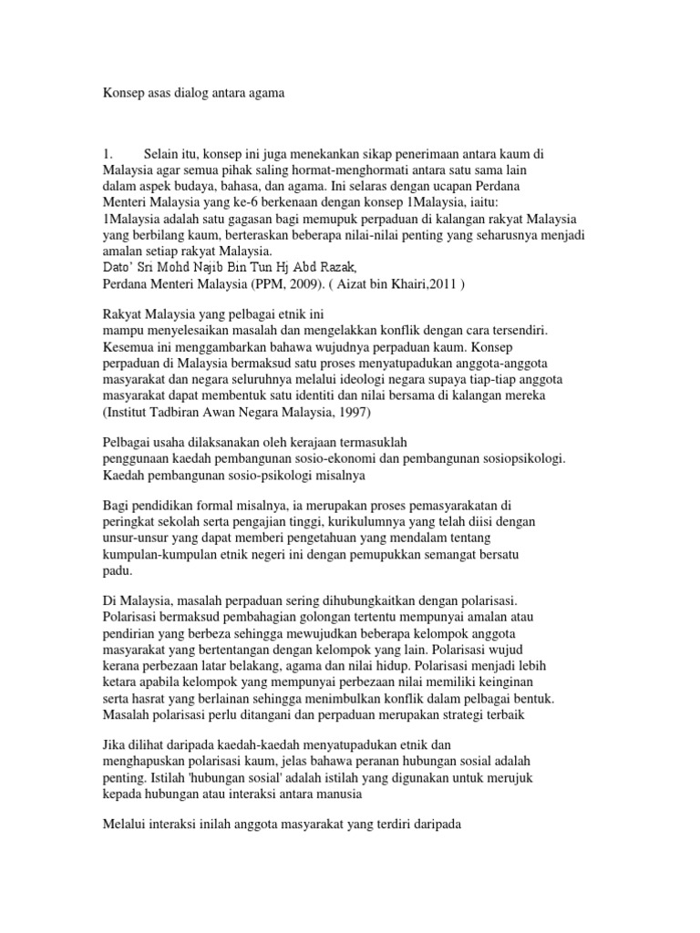 Kepentingan dialog antara tamadun dalam konteks masyarakat majmuk malaysia. Kepentingan mewujudkan perpaduan dalam kalangan masyarakat majmuk ialah untuk mengekalkan keharmonian dan mengelakkan perselisihan. Melalui dialog manusia boleh membincangkan perkara perkara yang. Realiti dan prospek di malaysia 95 dan kemelut masyarakat tetapi dialog juga berperanan dalam memupuk persefahaman dan perkongsian hidup bersama. Kesedaran ini disebabkan perkembangan teknologi maklumat dan komunikasi.