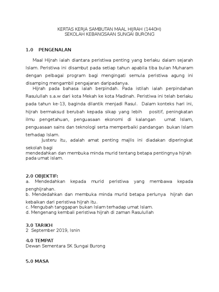 Related posts to contoh kertas kerja maal hijrah share to. Kertas kerja sambutan maal hijrah peringkat sekolah pengenalan program ini diadakan adalah bertujuan untuk mengajak warga sekolah menghayati hijrah rasulullah saw dan melakukan perubahan dalam kehidupan mereka. Contoh kertas kerja lawatan contoh kertas kerja lawatan sambil. Kertas kerja maulidur rasul maal hijrah dan khatam al quran sk taman universiti 2.