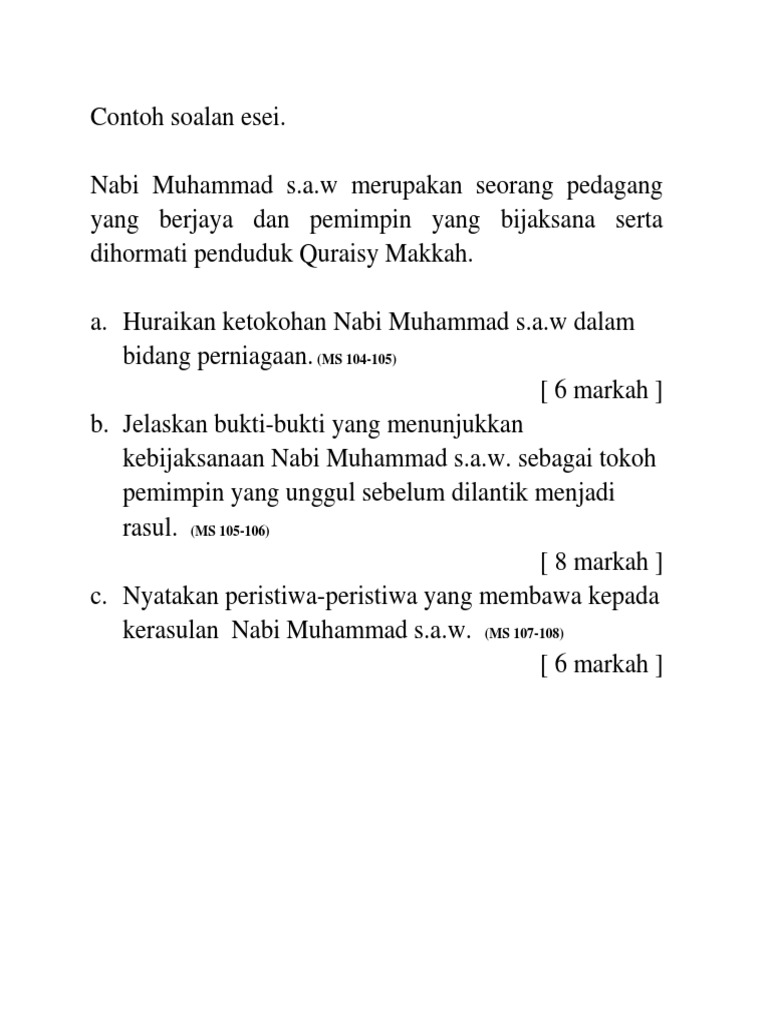 نبي محمد صلى الله عليه وسلم adalah pesuruh allah yang terakhir. 1 menerusi kitab suci al quran taurat injil dan zabur 2 melalui sifat sifat kenabian seperti menerima wahyu 3 memiliki sifat mulia seperti siddiq amanah tabliqh dan fatanah serta melalui bukti bukti sejarah. Nabi muhammad saw dilahirkan pada 12 rabiulawal bersamaan 20 april tahun gajah. Jelaskan ciri ciri kepimpinan yang terdapat pada diri nabi muhammad saw.