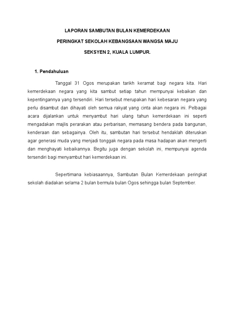 Kertas kerja sambutan bulan kemerdekaan 2020 new normal raihan jalaludin. Saya sediakan template laporan macam ni jer kalau ada panitia nak buat laporan program dorang print template dan. Laporan sambutan bulan kemerdekaan peringkat sekolah kebangsaan seri pristana sg buloh selangor 1. August 06 2020 lain lain.