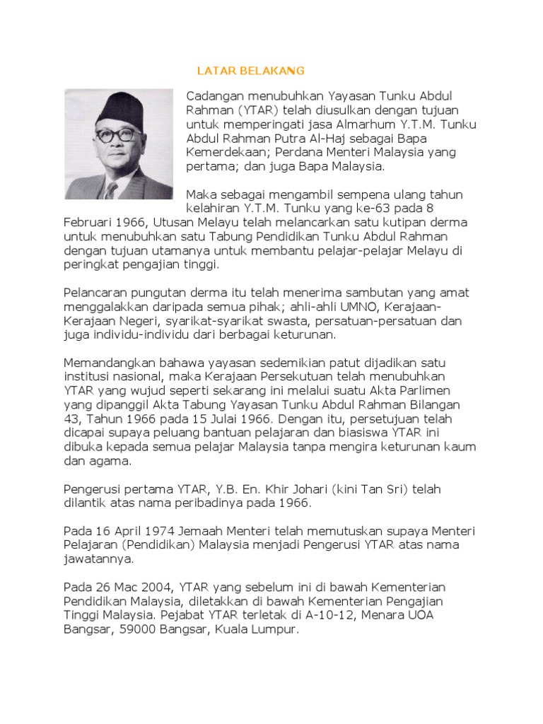Latar belakang tunku abdul rahman october 30 2020 leave a comment pertubuhan kebajikan islam malaysia perkim telah diasaskan oleh almarhum ytm tunku abdul rahman putra al haj dan didaftarkan pada 19 ogos 1960. Tunku abdul rahman putra al haj 1. Dengan latar belakang yang cukup komplek itu model negara dan pribadi tunku abdul rahman putra al haj penulis harap penelitian ini akan lebih menarik. Pembentukan malaysia pada tahun 1963 merupakan salah satu daripada pencapaiannya yang teragung.