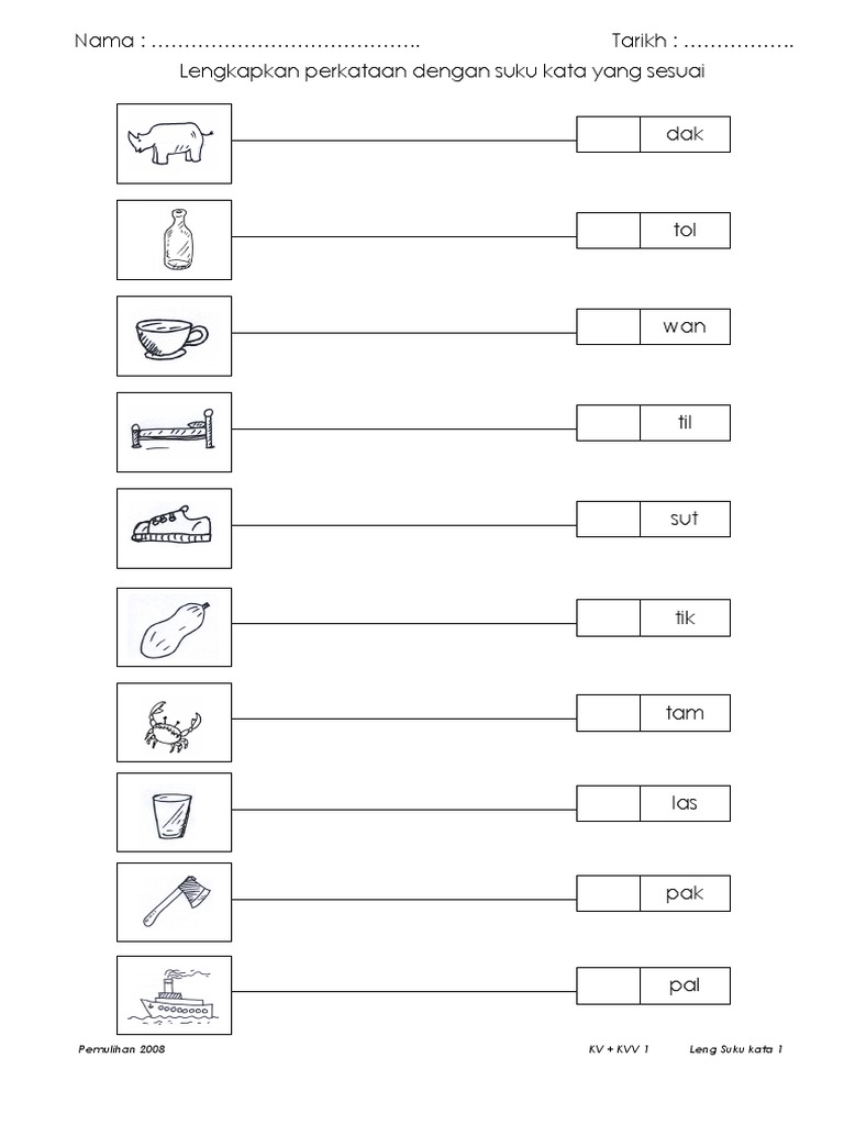 Bahan linus latihan menulis sukukata latihan suku kata linus menulis sukukata prasekolah. Latihan ini membolehkan murid menguasai suku kata terbuka kv suku kata tertutup kvk dan juga perkataan dua suku kata kv kvk. Burung gasing jagung tudung 2. Pisang tabung gelang payung 3.
