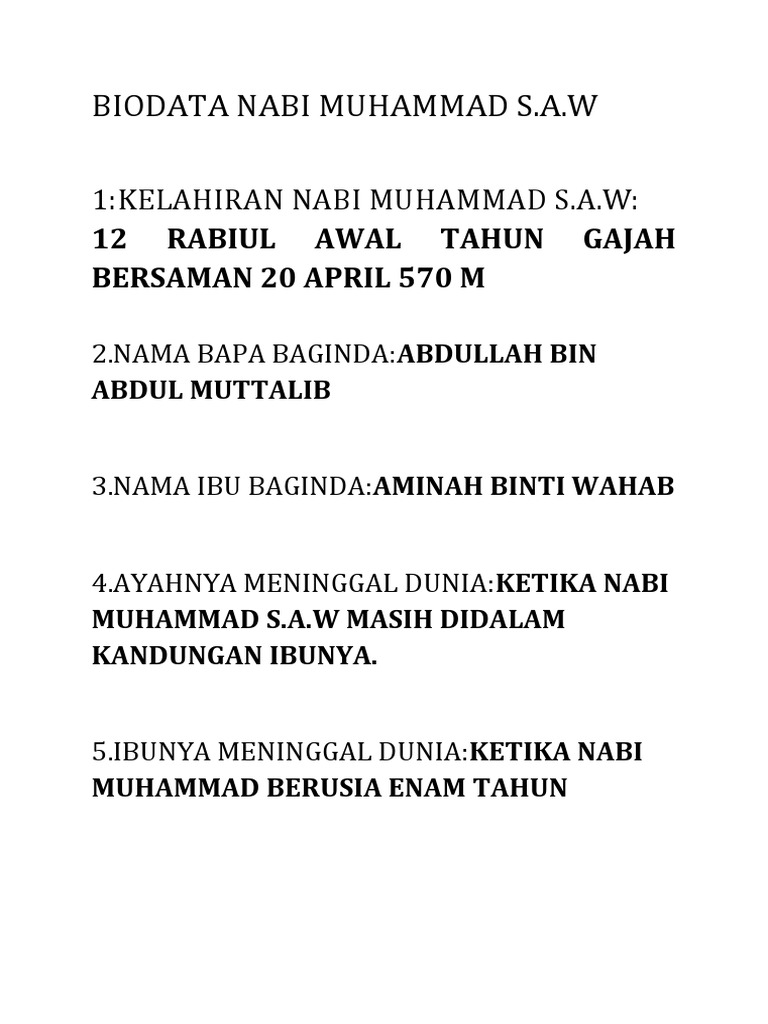 Biodata nabi muhammad s a w. Abdullah bin abdul muttalib bin hashim. Nabi muhammad saw wafat dalam usia 63 tahun lebih 3 hari menurut kalender qomariyah. Nama ibu susuan.