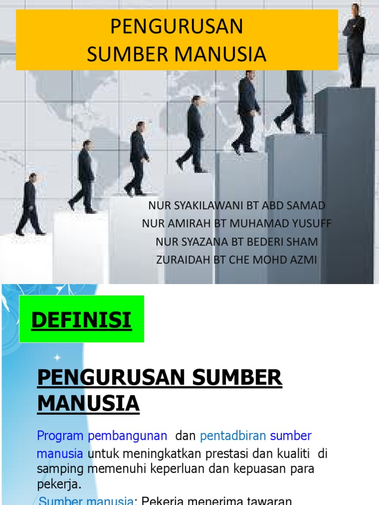 Pengurusan sumbermanusia 1 1 definisi pengurusan sumber pengursan sumber manusia ialah satu usaha pembangunan tenaga kerja dalam organisasi untuk menarik membangun dan mengekalkan tenaga pekerja yang berprestasi tinggi. O aktiviti perancangan sumber manusia o pengrekrutan o penilaian prestasi dan o kebajikan pekerja. O mempunyai keperluan sumber manusia yang mencukupi o membangunkan sumber manusia yang. Aplikasi peranan pengurusan sumber manusia.