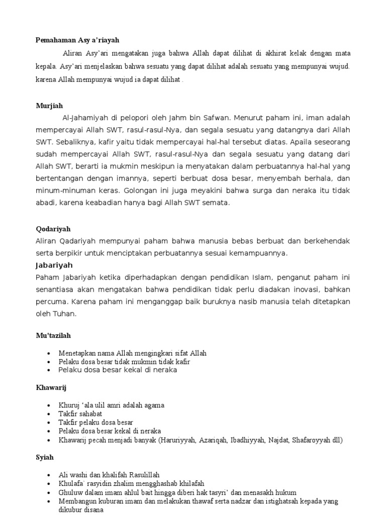 Abu hassan al asya ri. Menghurai pandangan ahli sunnah wal jamaah terhadap beberapa isu a. Melihat allah pelaku dosa besar iman qadha dan qadar al quran bukan makhluk 13. Newer post older post home.