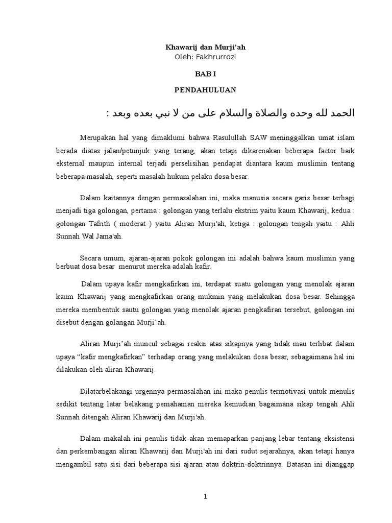 Mereka berpendapat kedudukan pelaku dosa besar berada antara keimanan dan kekufuran. Tidak mencela dan mengkafirkan orang yang tidak sealiran dengan mereka. Alhamdulillah segala puji pujian bagi allah tuhan sekalian alam dia lah yang mencipta arasy langit dan bumi dia lah jua pencipta tempat wujud nya tanpa memerlukan tempat. Ahli sunnah wal jamaah syiah dan khawarij.