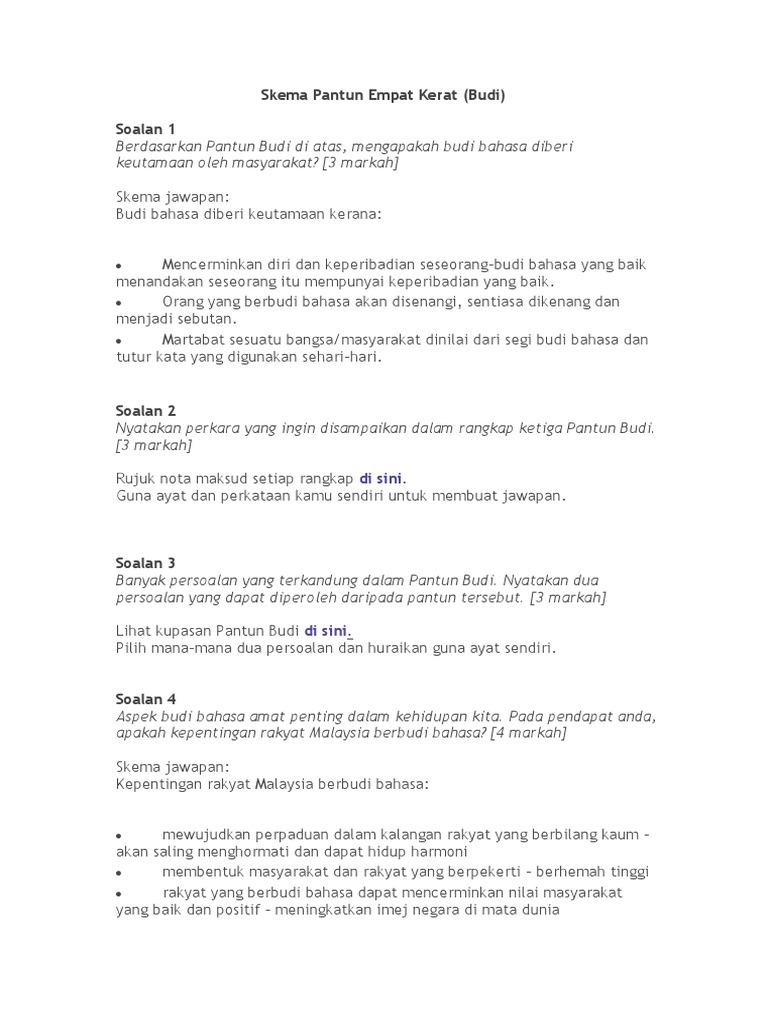 Pantun Empat Kerat Budi Soalan Dan Jawapan