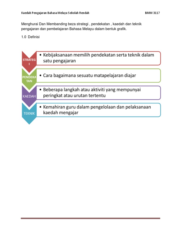 Pendekatan Strategi Kaedah Dan Teknik Pengajaran Dan Pembelajaran Bahasa Melayu