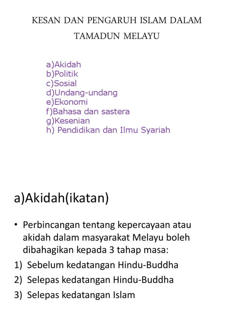 Kesan ini juga jelas dilihat di dalam kehidupan seharian masyarakat melayu. Proses penyerapan islam ini berlaku secara berper ingkat peringkat di kalangan masyarakat m elayu yang bermula daripada. Una ucena2010una ucena2010 july 14 2013 3 penerimaan secara damai dan sejahtera. Kehidupan masyarakat melayu banyak didasari adat dan ajaran agama islam.