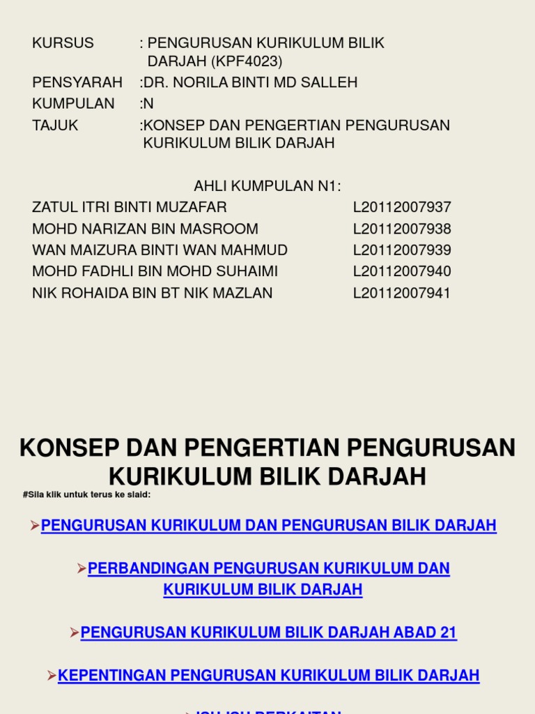 Bilik darjah ini tidak mementingkan kurikulum kerana selalunya murid bebas untuk memilih merancang dan melaksanakan aktiviti pembelajaran yang diminati. Norila binti md salleh kumpulan n tajuk konsep dan pengertian pengurusan kurikulum bilik darjah ahli kumpulan n1.