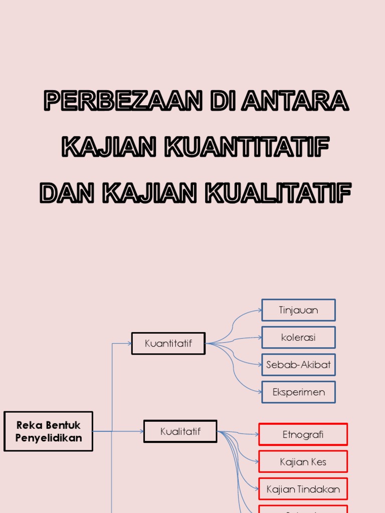Perbezaan antara kajian kuantitatif dan kualitatif. Desain penelitian kualitatif bersifat umum fleksibel dan dinamis. Penelitian kuantitatif mengambil jarak antara peneliti dengan obyek yang diteliti menggunakan instrumen instrumen formal standar dan bersifat mengukur. Penelitian kualitatif adalah metode untuk mencari dan mengumpulkan data yang bersifat pemahaman dan tidak dapat diukur dengan angka biasanya digunakan untuk memperoleh pendapat alasan dan motivasi masyarakat terhadap sebuah kegiatan produk atau persoalan kemudian dari data ini nantinya diambil sebuah kesimpulan berupa teori atau hipotesis. Perbezaan di antara kajian kuantitatif dan kajian kualitatif i bentuk data.