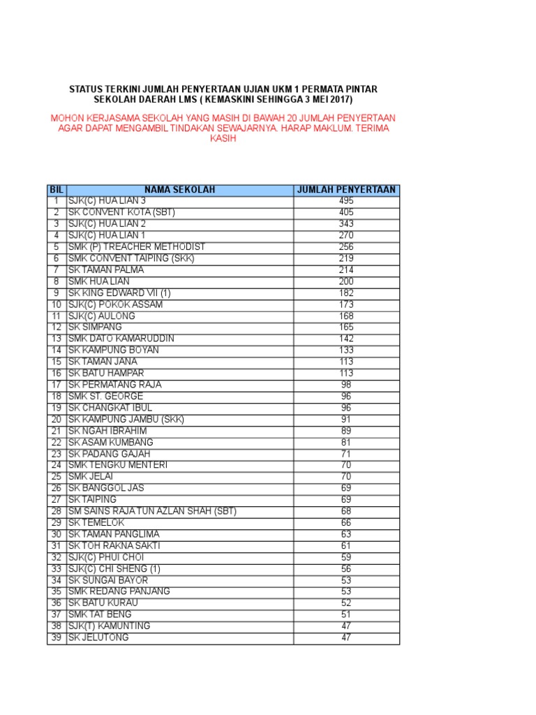 1 februari 2017. Ujian ini menguji keupayaan kecerdasan murid dan selesai sahaja ujian murid akan menerima sijil penyertaan. Ujian permata pintar ukm 1 mulai hari ini pengetua meminta saya mengatur murid 1 imtiyaz 2 imtiyaz dan ting 3 untuk menjalankan ujian permata pintar ukm 1. Ujian saringan ukm1 akan bermula 1 febuari dan akan berakhir pada 31 mei 2017.