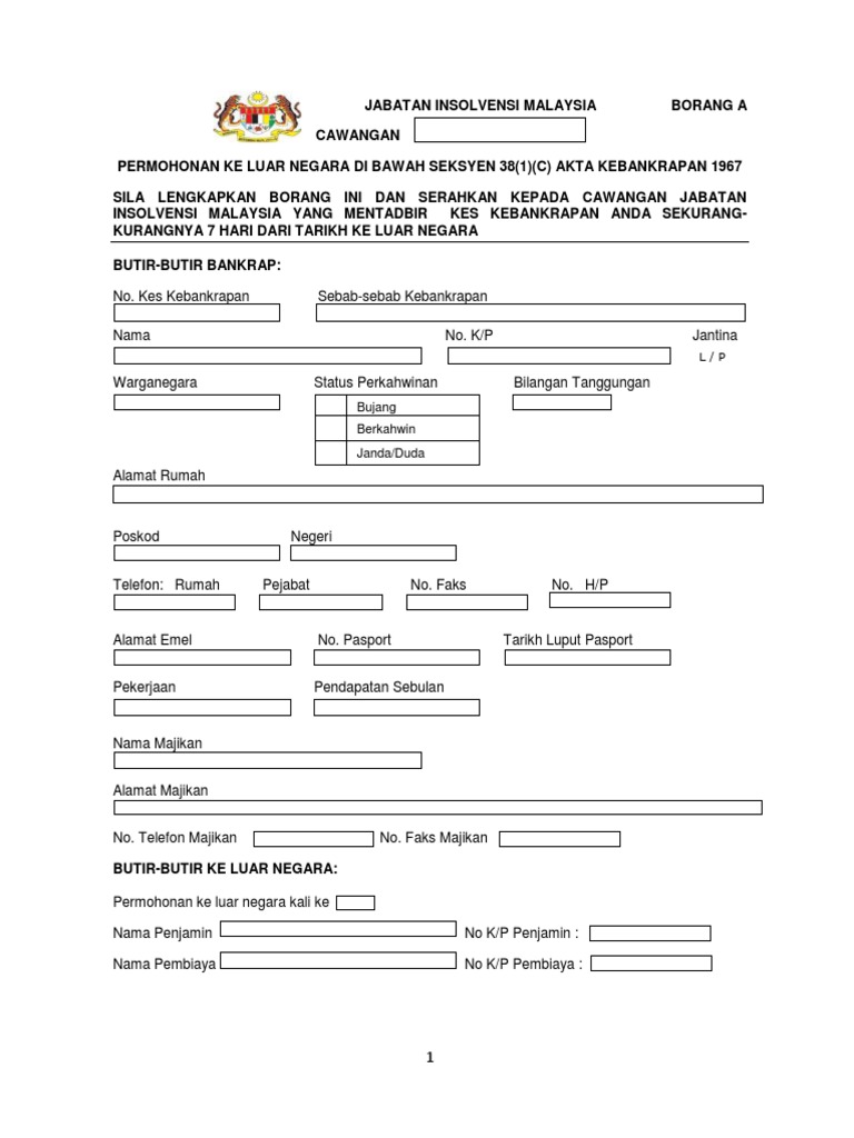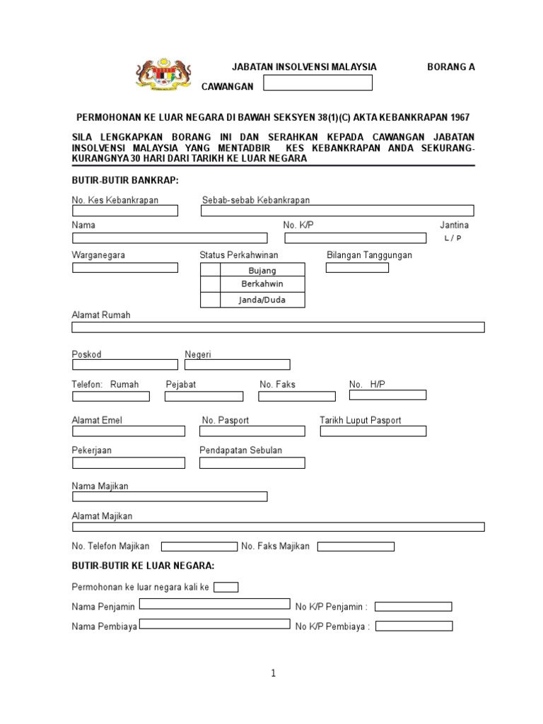 Permohonan keluar negara di bawah sek 38 1 c akta kebankrapan 1967 arahan jabatan bil 14 2016 mana mana bankrap yang belum dilepaskan mesti mendapatkan kebenaran bertulis daripada ketua pengarah insolvensi atau mahkamah untuk meninggalkan malaysia. 31 10 2020 earthquake in the aegean sea off the coasts of the republic of turkey and greece. Jika bankrap cuba untuk meninggalkan malaysia tanpa kebenaran terlebih dahulu daripada ketua pengarah insolvensi pasport dan dokumen. Maklumat pasangan keluarga saudara pegawai di luar negara nama.