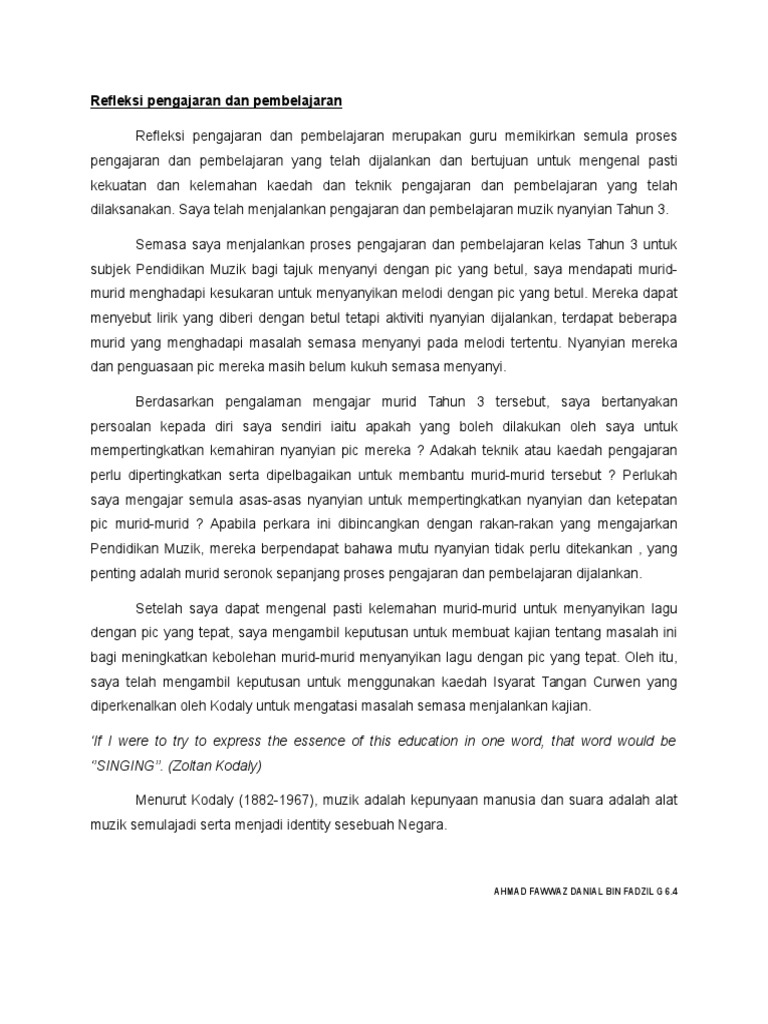 Refleksi Pengajaran Dan Pembelajaran