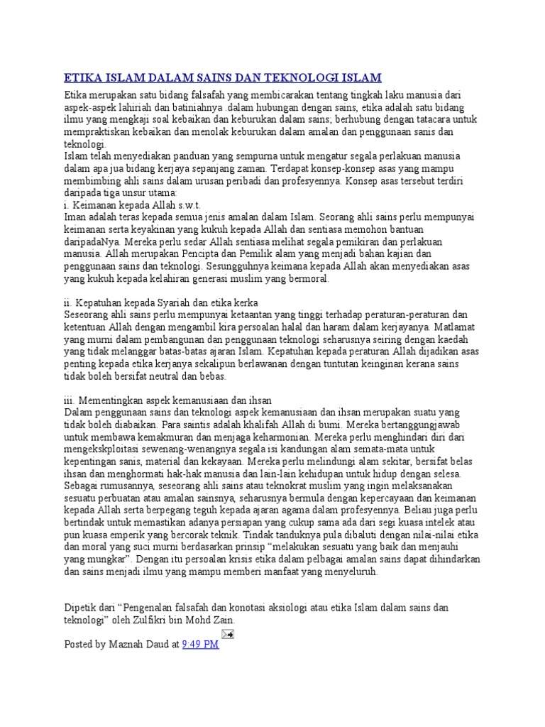 Sains dan teknologi dalam islam pdf. Memanfaatkan sains bagi memartabatkan islam mohd ridhuan tee bin abdullah universiti sultan zainal abidin unisza redwan bin yasin universiti pertahanan nasional malaysia upnm abstrak agama islam yang syumul sememang tidak dapat dipisahkan daripada sains. Keduanya sudah menjadi simbol kemajuan dan kemodernan pada abad ini. Sejarah tamadun manusia memerlukan usaha manifestasi nilai dalam skop perspektif mereka sendiri. Sains dan teknologi mengalami perkembangan yang begitu pesat bagi kehidupan manusia.