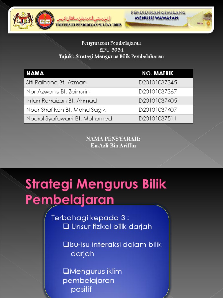 Strategi mengurus bilik pembelajaran. Strategi mengurus bilik pembelajaran strategi pengurusan bilik darjah bilik pembelajaran haji samsudin bin md noor. Selain itu interaksi dalam bilik darjah merupakan antara strategi mengurus bilik pembelajaran. Strategi mengurus bilik pembelajaran. Terdapat beberapa bilik pembelajaran yang sering digunakan oleh pelajar iaitu bilik darjah makmal sains makmal komputer studio dan tempat tempat pembelajaran yang seumpama dengannya.