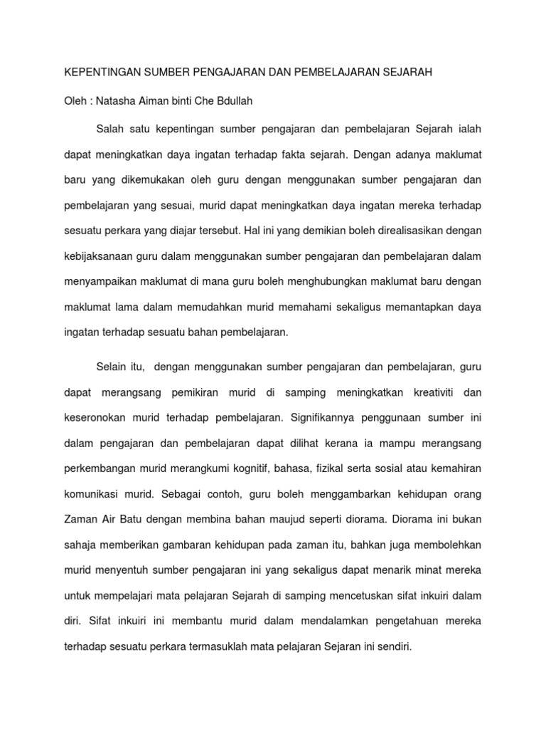 Sumber pengajaran dan pembelajaran sejarah. Tradisi sejarah dalam masyarakat indonesia masa pra aksara dan masa aksara yang dideskripsikan melalui prinsip prinsip dasar penelitian sejarah. Apabila guru menggunakan pelbagai sumber maka pembelajaran menjadi lebih berkesan dan bermakna kerana murid dapat memahami sesuatu tajuk yang diajar dengan mudah dan jelas haizum hanim ab. Pengertian dan ruang lingkup ilmu sejarah sejarah sebagai peristiwa kisah ilmu pengertian dan contoh periodisasi sumber sejarah hubungan sebab akibat 2. Signifikan penggunaan sumber pengajaran dan pembelajaran yang seterusnya ialah murid dapat menginterpretasi maklumat daripada peristiwa sejarah.
