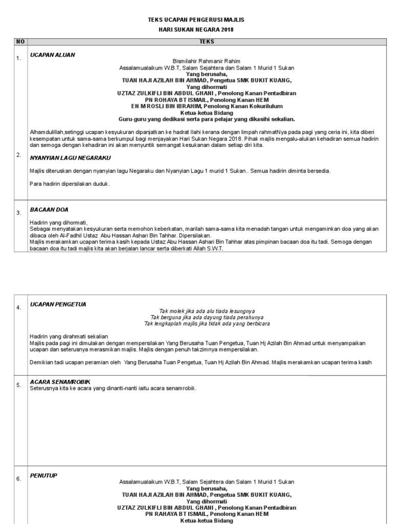 Majlis merakamkan terima kasih kepada yang berbahagia en. Tidak sempurna majlis kita pada hari ini tanpa mendengar ucapan perasmian. Cara mendownload klik link dibawah tunggu 5 saat dan skip ad untuk muat turun t eks pengacara majlis sukan 1. Kejohanan sukan tahunan skte kali ke 36.