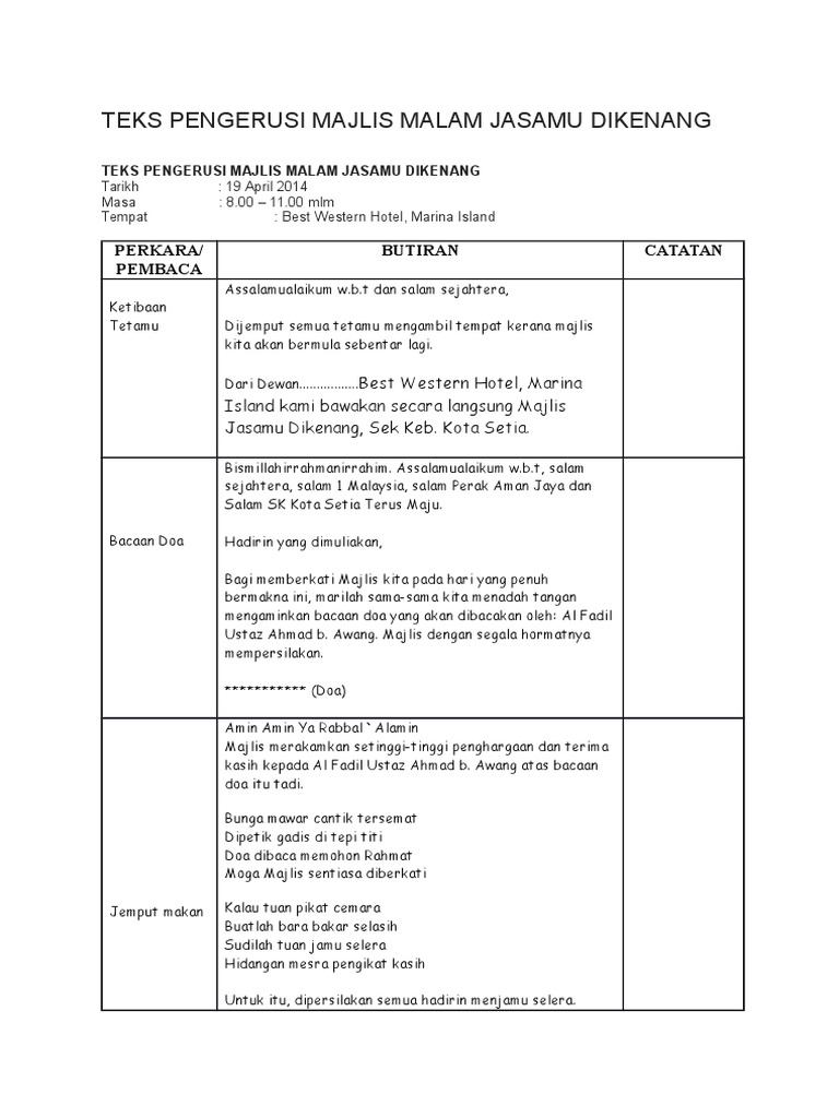 Teks ucapan majlis makan malam jasamu dikenang. Kita skrip majlis makan malam. Bacaan doa majlis makan malam perdana youtube. Mekap glamor untuk ke majlis rasmi atau makan malam 3 19. Majlis turut merakamkan ribuan terima kasih kepada semua tetamu dan hadirin yang sudi meluangkan masa bersama sama memeriahkan malam jasamu dikenang ini.