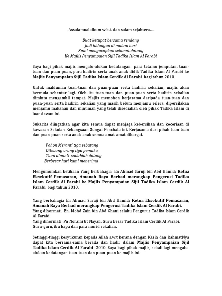 Abdul halim bin mohamed yatim. Alyn alissa 1b 3c 1d 2. Teks ucapan sukaneka tabika kemas taman mantau indah 1 sabtu ni aku jadi mc utk sukaneka tabika kemas kt taman aku so kena la prepared ape yang patut. Muhamad azmil mustafa 5a 7.