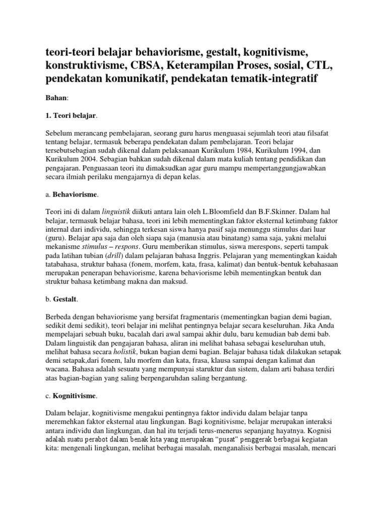 Sehubungan dengan itu banyak pengaplikasian elemen teori kognitif yang dapat dikenal pasti di dalam bilik darjah semasa sesuatu proses pengajaran dan pembelajaran. Teori belajar dan penerapannya dalam pembelajaran oleh. Berikut di bawah ini penjelasan beberapa teori belajar dan pembelajaran beserta tokoh yang mempeloporinya. Dalam humanisme belajar adalah proses yang berpusat pada pelajar dan dipersonalisasikan dan peran pendidik adalah sebagai seorang fasilitator.
