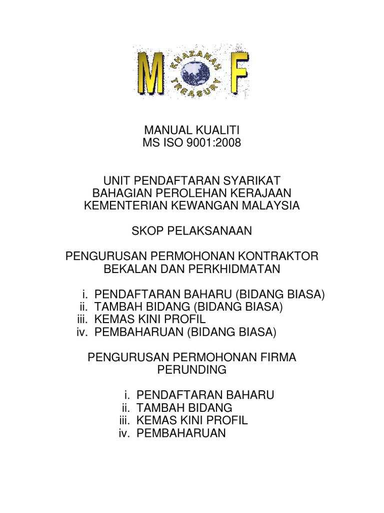 Bahagian perolehan kerajaan kementerian kewangan malaysia aras bawah blok utara kompleks kementerian kewangan malaysia no. Rujukan prosedur kualiti nama prosedur kualiti 1 pu ups 001 permohonan pendaftaran baharu bidang biasa syarikat 2 pu ups 002. Cl 35 730 20 9 15 19. Bahagian perolehan kerajaan kementerian kewangan malaysia aras bawah blok utara kompleks kementerian kewangan malaysia no.